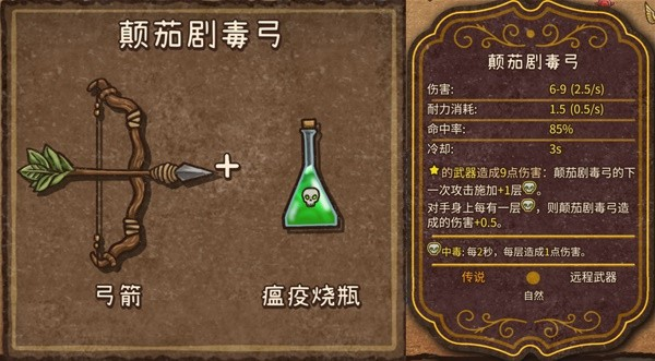 9、颠茄剧毒弓(传说,自然,远程武器):弓箭+瘟疫烧瓶