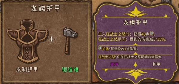 6、龙鳞护甲(史诗,护甲):皮制护甲+锻造锤