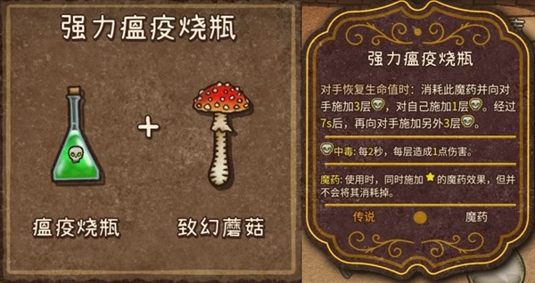 4、强力瘟疫烧瓶(传说,魔药):瘟疫烧瓶+致幻蘑菇