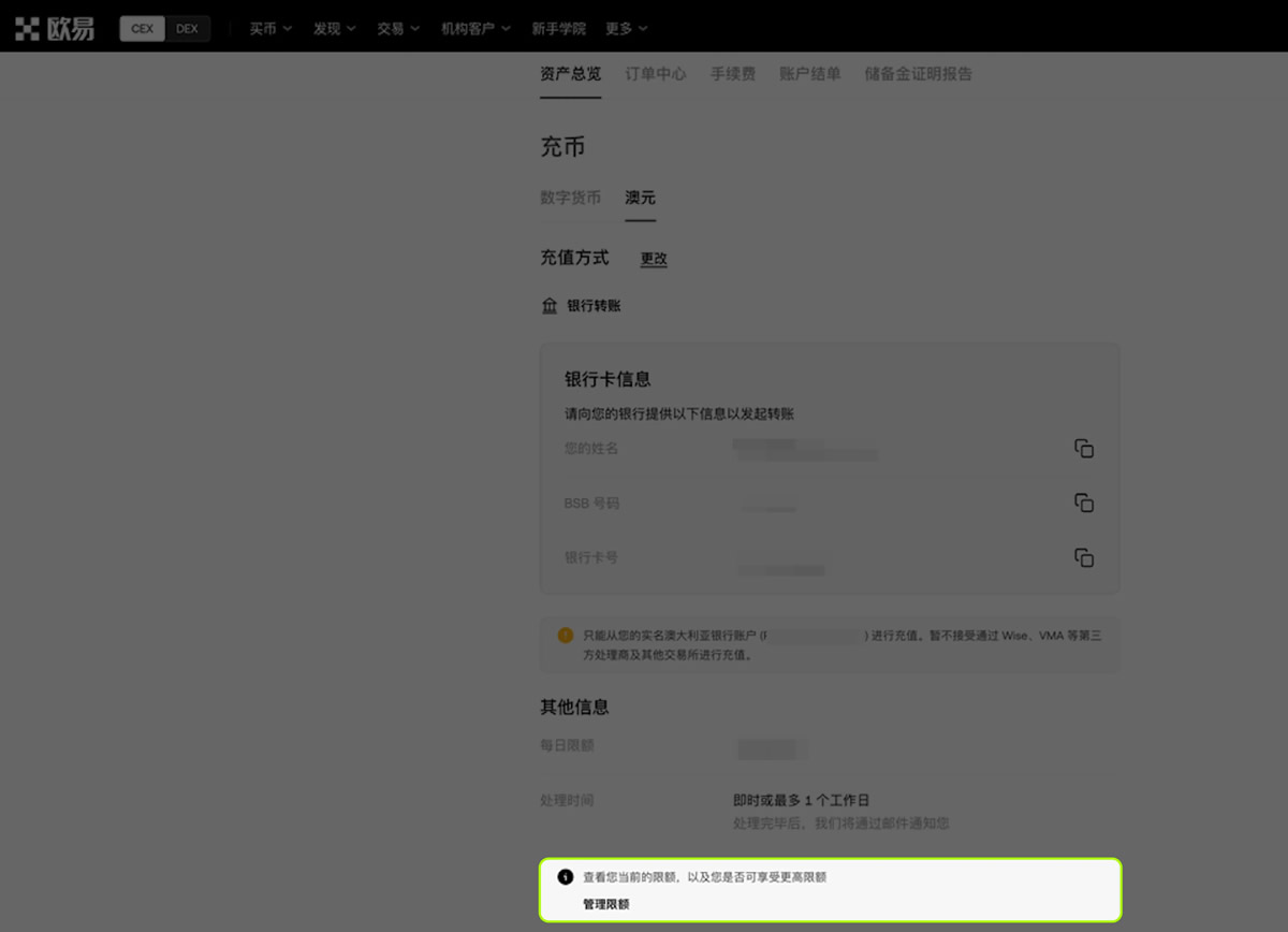 打开欧易App(官方注册 官方下载),选择【充币】-【充入 AUD】;或者登录官网账号,进入【资产管理】-【充币】,选择【USDT 】;