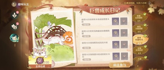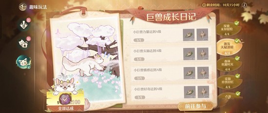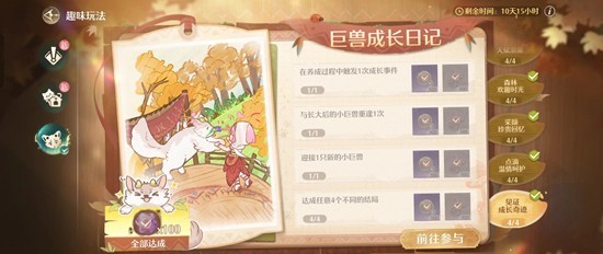 发现一个巨兽成长日记超好刷的步骤,除了第二只小巨兽外,其他三只只需要两点一线