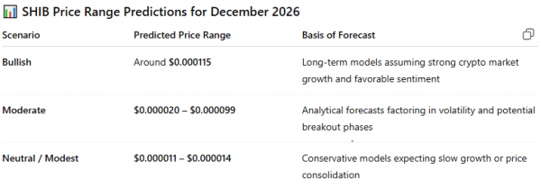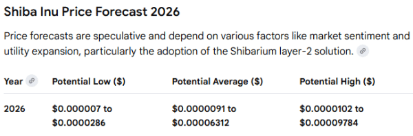 值得注意的是,包括ChatGPT和Google Gemini在内的AI模型对2026年底SHIB价格做出了预测。