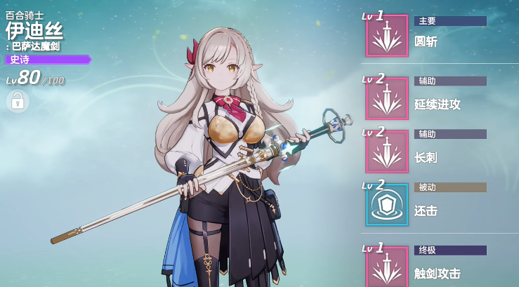后期的支援技能是清唱剧合格,在战斗一开始的时候就会根据当前充电状态的敌人,来造成队长精灵攻击力上面220%的伤害,如果队长精灵是伊迪丝的话,那么这个效果会给伊迪丝带来一些攻击加速,还有暴击上面的增益,所以如果用伊迪丝跟黑伊兹尔放在一起用,显然能力是会更好一些。