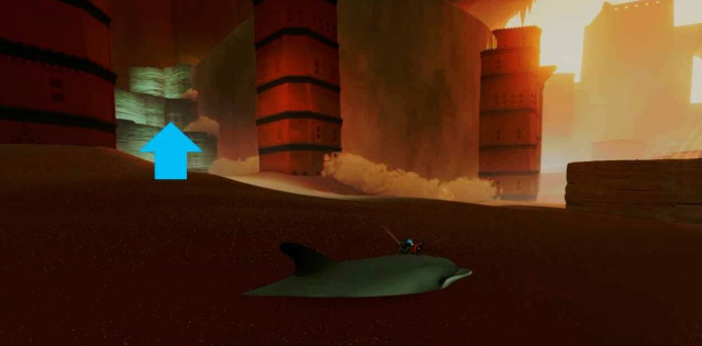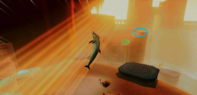4、利用水母跳到远处的石柱上即可看到贝壳