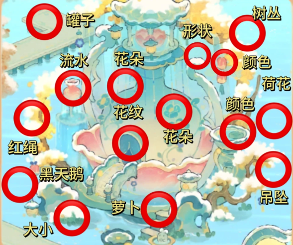 桃源深处有人家萝眼金睛活动玩法中,需要在各个关卡中的图案找到隐藏的点位信息内容,下面统计列举出了具体的萝眼金睛的15个点位答案相关内容图,按照图示来进行参考寻找即可。