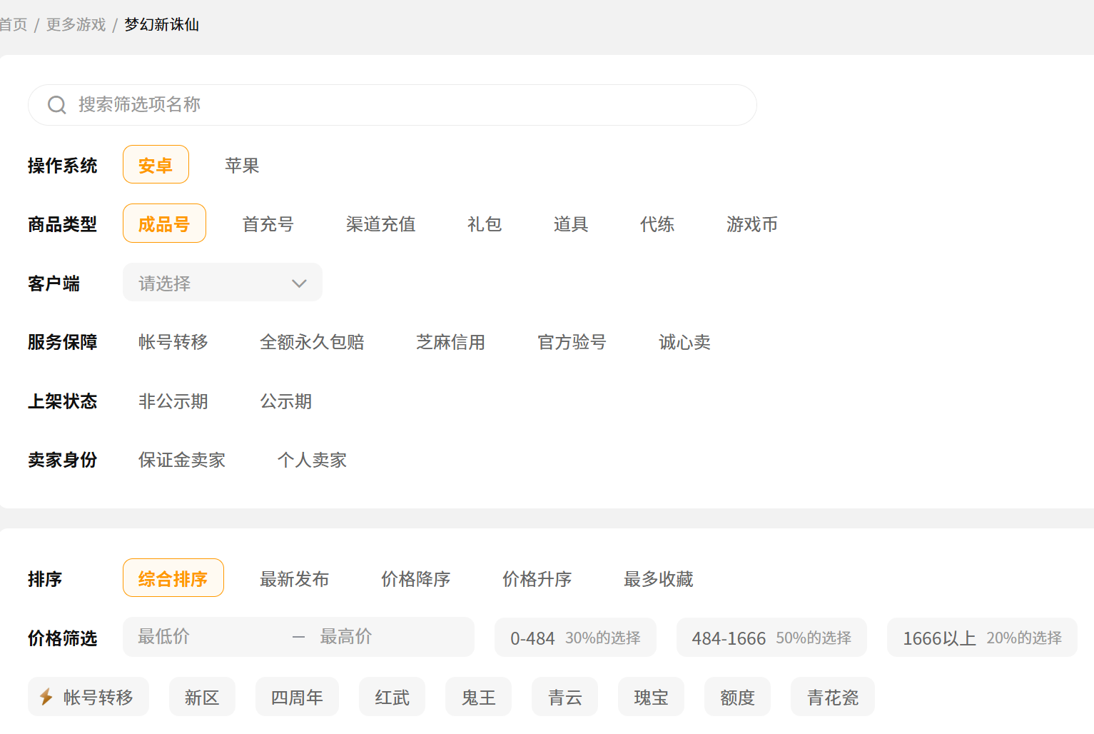 的梦幻新诛仙交易专区里的游戏账号丰富多样,涵盖了游戏的各个服务器,不管是热门的还是小众冷门的,都能找到对应的账号。角色类型分类的账号也应有尽有,还有等级跨度也是很广泛的,从初入游戏的低等级账号,到经历了长时间培养等级高实力强的高级账号。不管你是想要新手玩家,还是想要重新体验游戏的老玩家,都能够在这里找到适合自己的梦幻新诛仙账号。