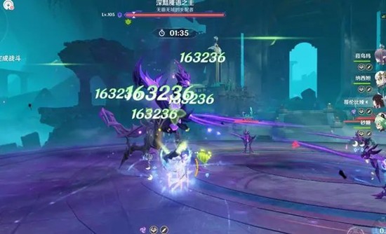 只是,很多玩家,包括我自己,都被小怪迷惑了,以为想破机制就得先打小怪,可实际上,这个怪物,只需要用月曜反应,攻击本体即可,当血条上的刻度,走到最左边,怪物就会瘫痪倒地,此时尽情的输出就完事。