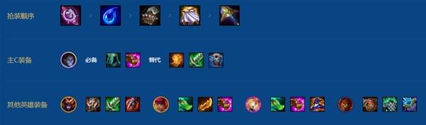 装备方优先安妮的回蓝装,肉装给提伯斯很好用。多余物理装就用重铸,实在消化不了就用赛娜换费德提克(稻草人),物理装给他。最好2经济一装备,要求经济很高,装备要对。