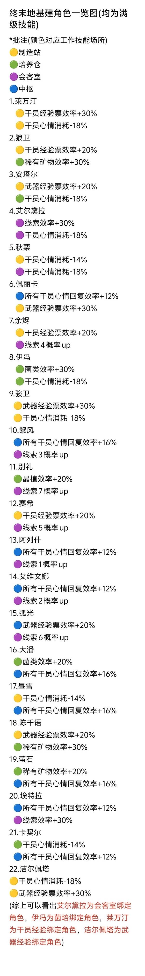 《明日方舟终末地》基建角色技能汇总一览分享