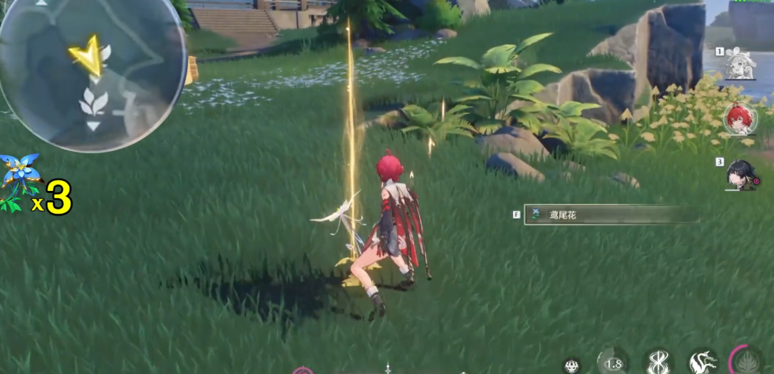紧接着,第二朵位于第一朵西边偏南方向的水中陆地上,第三朵则需要你跨过一条小河,在对岸的湿地上便能找到。整个采集过程基本上是沿着河道与湿地展开,花朵分布相对集中,跑一趟下来效率颇高。鸢尾花在怨鸟泽的羽鹭湿地以及车站南方向的小型信标附近也有零散分布。