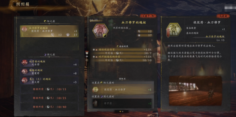 阴阳术是《仁王3》中极具策略深度的辅助战斗系统,其核心在于通过阴阳箱合成各类功能性符咒。玩家需先在神灶处进入“阴阳相”界面,消耗从敌方怪物掉落的魂核作为基础材料,即可完成符咒生成。整个流程无需复杂操作,但效果高度依赖前期属性配置与材料搭配。