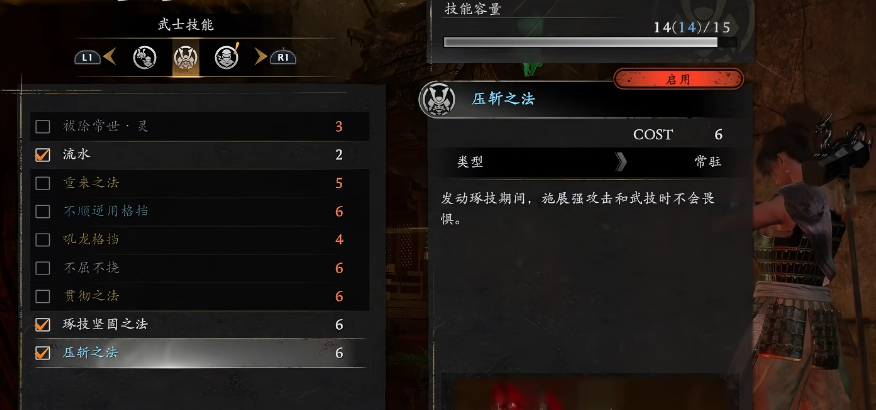 武者路线则侧重攻防平衡与续航强度,建议围绕“隔档+残心+琢技”构建:琢技显著提升单次攻击爆发力,是破防与压制的关键;残心可在格挡或闪避后迅速恢复精力值,延长连续作战窗口;隔档则强化防御判定稳定性,降低受击硬直风险。
