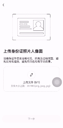 认证类型选择中国居民身份件,按提示上传正反面照片。