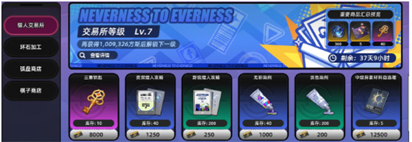 第二种是猎人交易所兑换,这个就比较直接了。用游戏里面的基础货币方斯就能换,而且上限很高,理论上可以直接把每期的钥匙额度拉满。方斯这个货币平时做日常任务、清体力都会掉落,积累速度还算可以。对于不想氪金又想稳定获取武器的玩家来说,这条渠道算是最靠谱的。