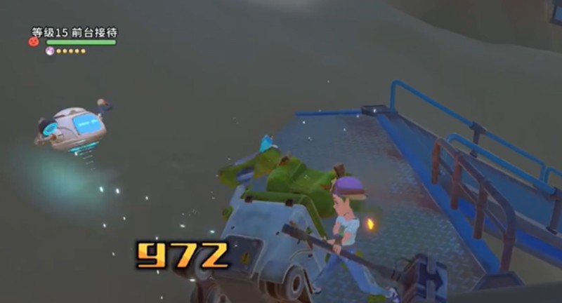 沿着围栏走一段路后,会遇到一个大约15级的敌人“清洁工”。击败它可以获得“破损的能源石”。紧接着,一个名为“前台接待”的机器人会发起攻击。如果玩家等级或装备不足,建议快速解决清洁工,避免陷入以一敌二的不利局面。