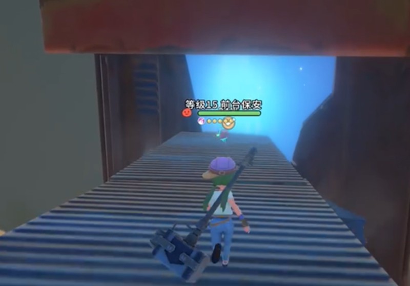 继续前进,会看到一个悬崖壁。顺着崖壁走,可以发现一个通往地下的蓝色楼梯。楼梯沿途有不少小怪,玩家可以根据自身情况选择清理或直接绕过。到达楼梯底部后,会看到一个散发着蓝光的地点,其附近有“前台保安”把守。击败保安后,靠近蓝光处即可交互,从而进入失乐园商场内部,并解锁寻找能源核心的新任务目标。