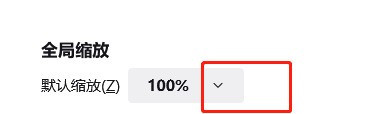 3、点击<默认缩放右边的下拉按钮>。