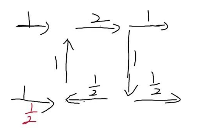 第一次回流,④=③+⑤=3/4,n=1/2+④=5/4,......
