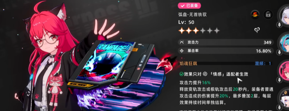 角色战力构筑是贯穿游戏进程的基础主线。由于战斗表现直接取决于角色状态,养成策略的合理性将显著影响关卡推进效率。成长路径涵盖等级提升、弧盘装配与突破进阶三类核心操作。其中,弧盘作为专属武器系统,不仅提供基础属性加成,更深度绑定角色技能释放逻辑——每位角色仅适配特定弧盘类型,错误匹配将导致异能效果衰减。各类养成材料需通过体力消耗在指定副本中稳定获取,资源规划需兼顾短期战力需求与长期培养节奏。