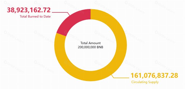 在发行总量方面,BNB采用一种自动销毁机制,每个季度都会根据BNB的价格以及BSC链产生的区块的数量对BNB进行销毁,直至总供应量降至1 亿个。整个销毁过程公开透明,用户可以在官网或者区块链浏览器上进行查看。截至目前,BNB总流通量约为1.61 亿。