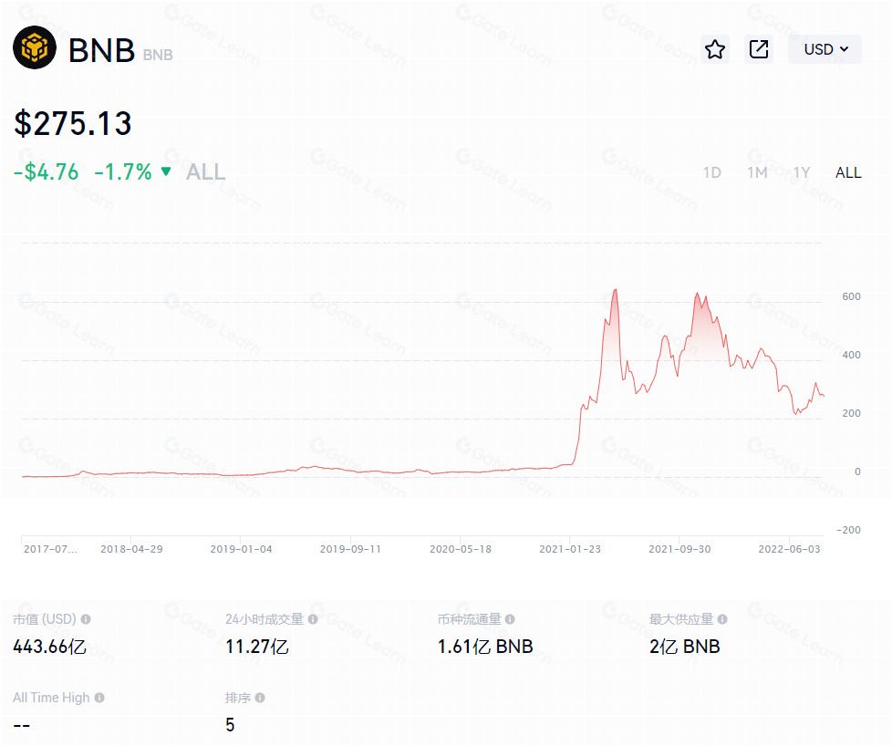总的来说,作为头部交易所的平台代币,BNB以总市值443.66 亿美元在平台币中一骑绝尘,在整个加密货币市场中也是位列第五。投资BNB是规避风险的有效手段,不会有空气币归零的风险,同时还可以在币安交易所购买收益率较高的理财产品。虽然BNB的价格再翻上千倍的可能性微乎其微,但是也不失为加密货币市场上一个好的投资选择。
