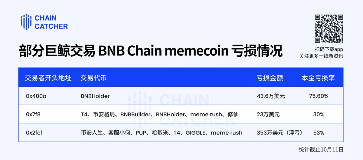 即便资金规模庞大,在筹 码高度集中、流动性薄弱的Memecoin市场中,巨鲸同样难以避免因信息滞后、项目控盘或情绪驱动所带来的巨额亏损。
