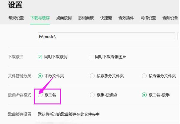 4、在这一栏,有一个【歌曲命名格式】,在这里设置即可。