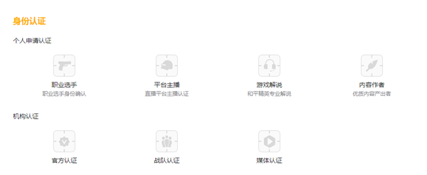 4、随后玩家进入实名认证,认证的时候可以选择职业选择、平台主播、游戏解说、内容作者或者官方认证、战队认证、媒体认证。