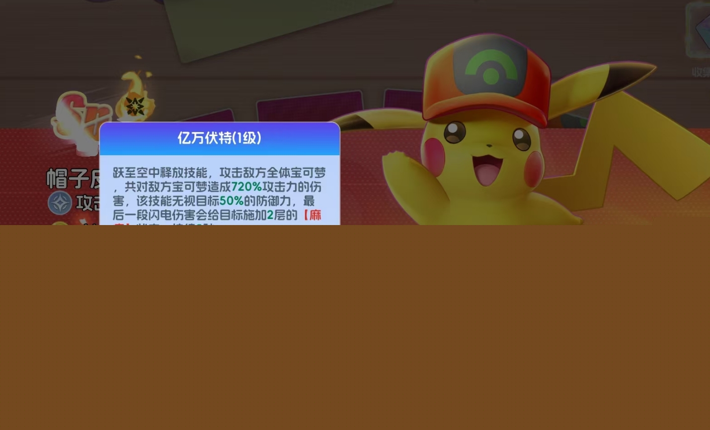 凭借高倍率无衰减群攻、稳定瘫痪控制及防御穿透特性,帽子皮卡丘已成为中高阶阵容中的核心输出支点。其综合强度在SP品质宝可梦中位居前列,是玩家推进主线、挑战高难内容时值得重点培养的关键单位。