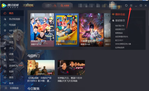 1、打开腾讯视频,在腾讯视频的主界面点击右上角的三条横。