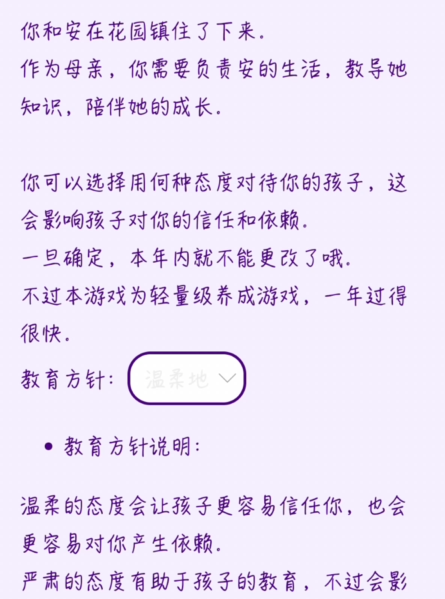 游戏的核心玩法围绕“养育”展开:通过日常互动、事件选择与资源分配提升亲密度,触发专属剧情线。每位孩子拥有独立成长路径与性格逻辑,由此衍生出风格各异的故事分支——有温暖治愈的日常片段,也有直击人心的情感高潮,整体叙事节奏舒缓而富有余韵。