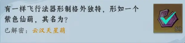 1、有一样飞行法器形制格外独特,形如一个紫色仙葫,其名为?云汉天星葫