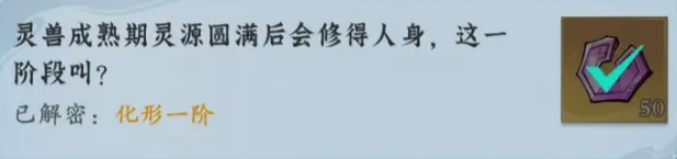5、灵兽成熟期灵源圆满后会修得人身,这一阶段叫?化形一阶