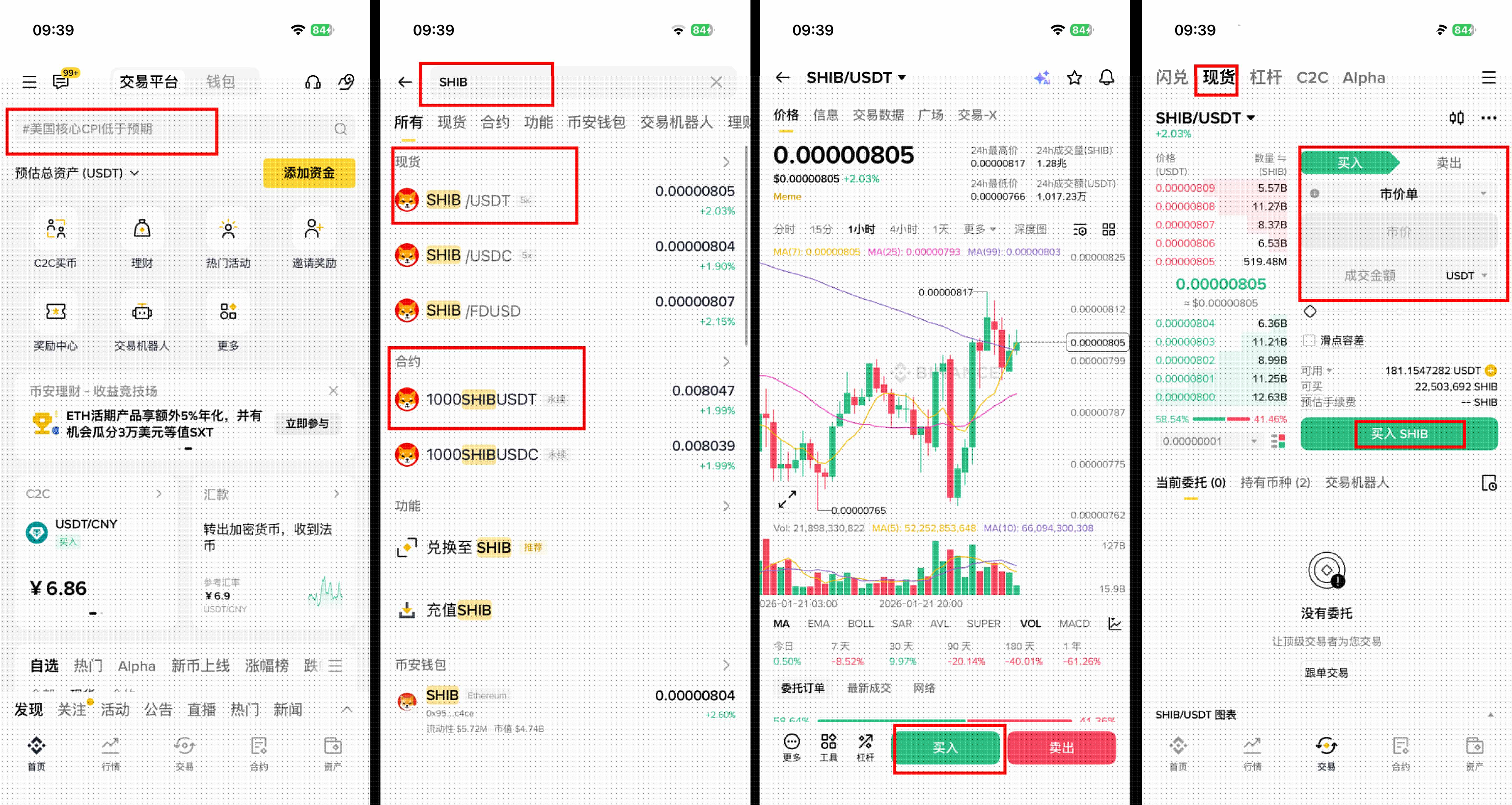 后面的段落,我也会实际示范如何在币安上进行柴犬币的买卖操作。