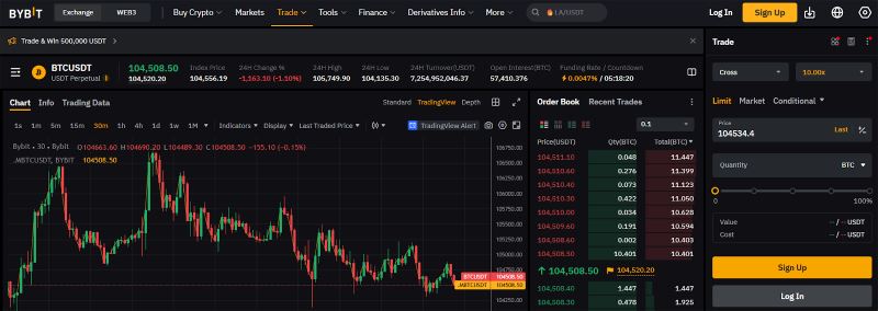 该平台专注于期货交易,提供永续合约和季度合约,杠杆高达100倍,涵盖比特币和以太坊等主流加密货币,以及超过1500种加密货币和500多个期货交易对。Bybit拥有用户友好的界面、高流动性和先进的工具,使其成为新手和经验丰富的交易者的理想之选。其10万TPS的撮合引擎确保订单快速执行,避免过载,99.99%的系统正常运行时间保证了可靠性。