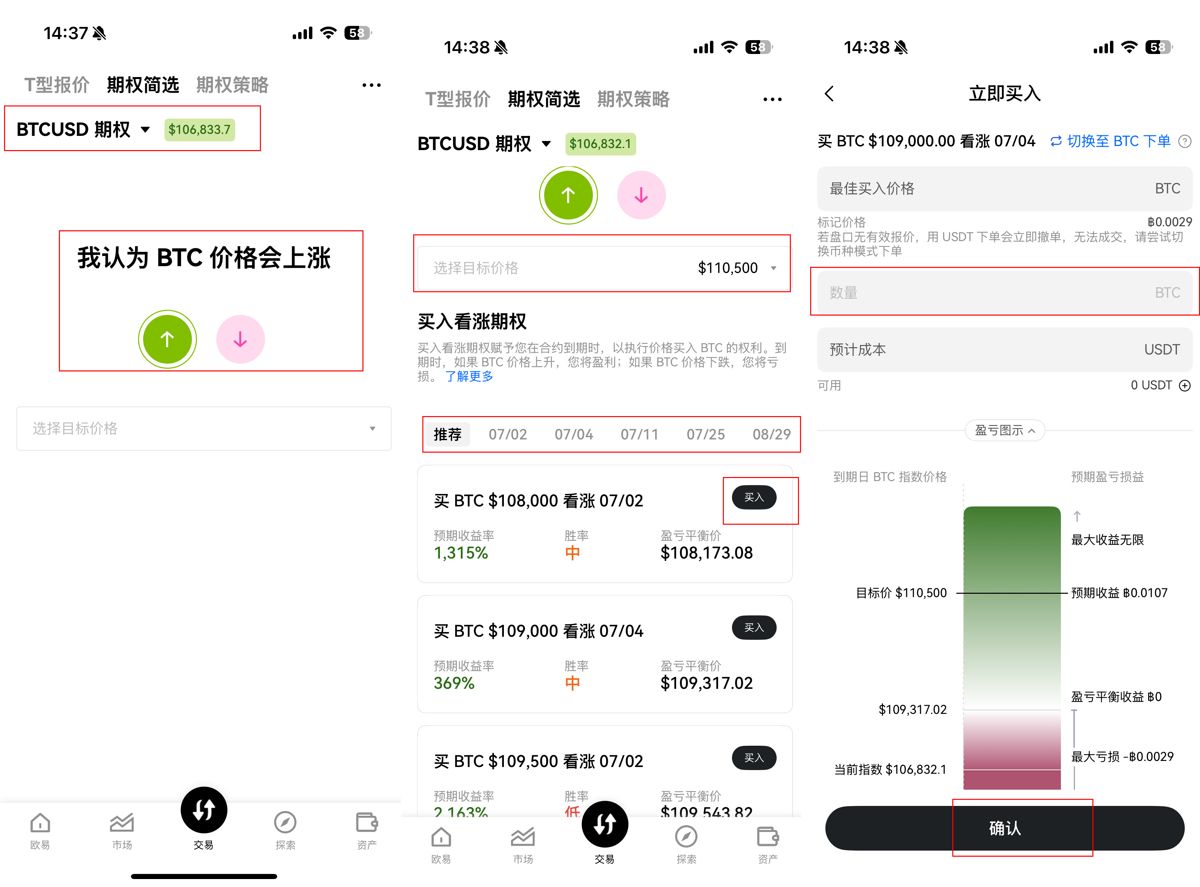 购买OKX比特币期权教学