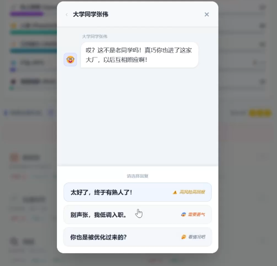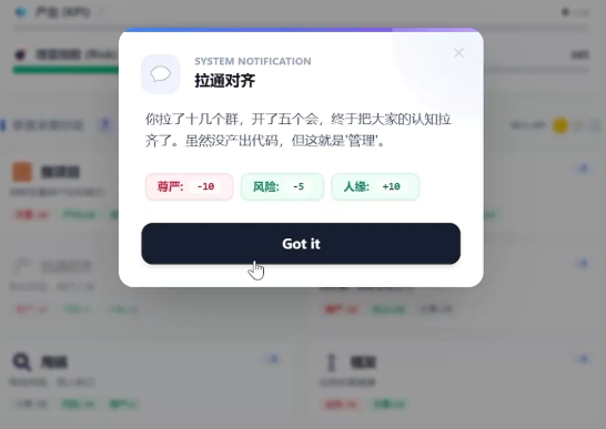 游戏核心玩法围绕动态决策展开。每个关键节点均设置多维度选项,其影响覆盖短期资源变动、中期团队信任度及长期职业天花板。例如某次需求评审中的技术方案取舍,可能直接触发后续迭代延期、客户投诉或架构重构事件,进而改变季度绩效评级与跳槽机会窗口。