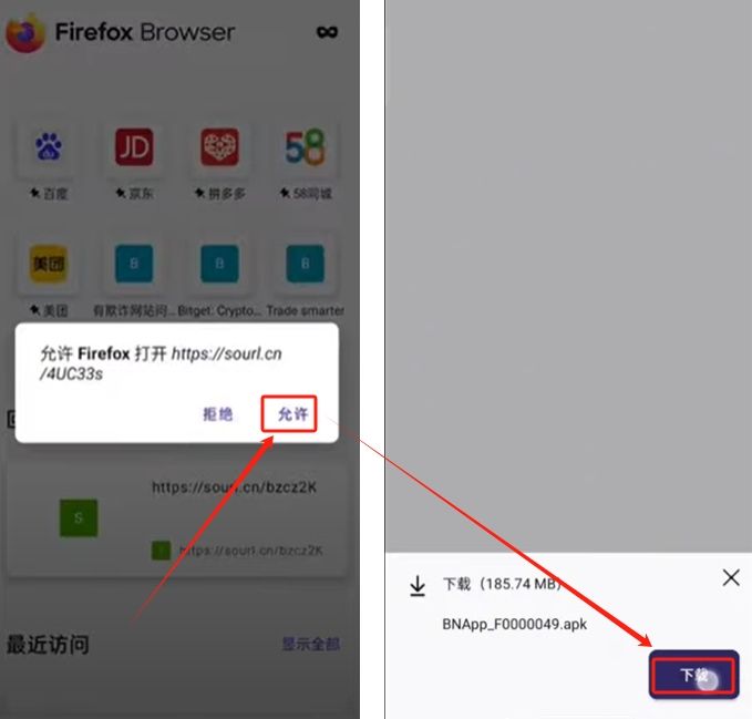 3.点击“允许”,再点击“下载”这个APK安装包就可以了。