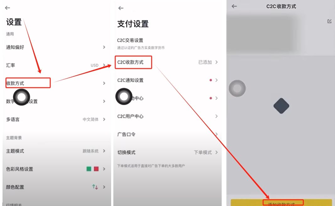 2.点击【收款方式】,选择第一个【C2C收款方式】,在下方点击【添加收款方式】