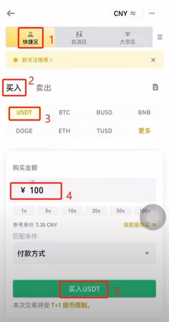 输入要购买的金额,点击【买入USDT】