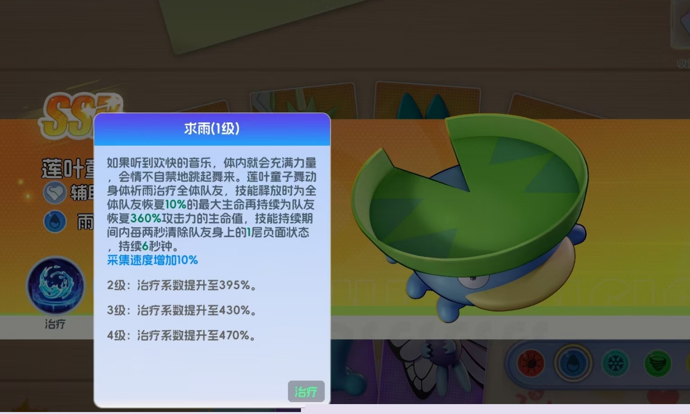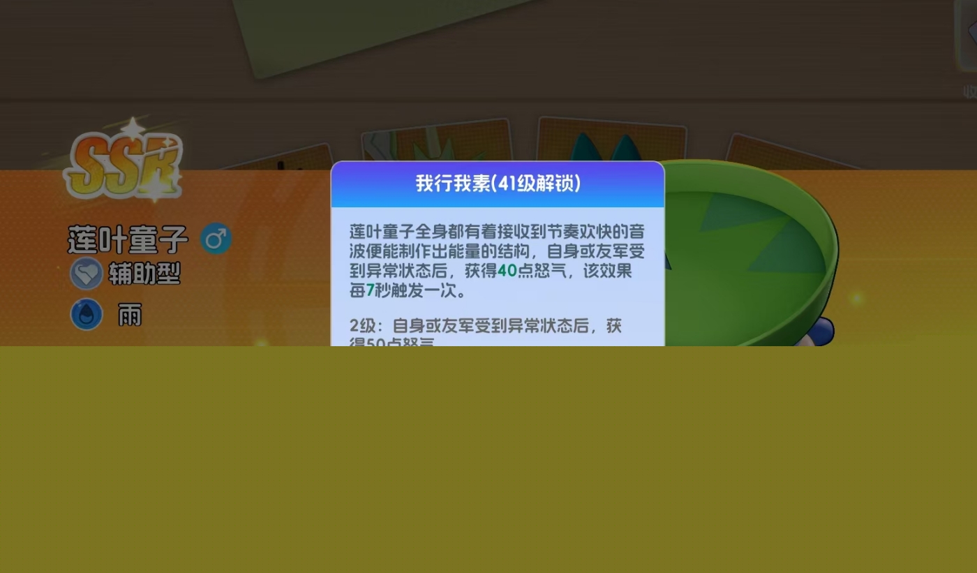 莲叶童子的核心技能“求雨”不仅提供全队持续治疗,更具备主动净化机制:在技能生效期间,每2秒自动移除一名友方单位身上的一层异常状态,单次释放最多清除三层。这一特性使其成为对抗毒、麻痹、灼伤、冰冻、混乱等多类负面效果时的关键对策手。此外,11级解锁的“寄生种子”拥有智能目标判定逻辑——自动锁定当前己方生命值最低的宝可梦,并为其施加稳定治疗,显著提升队伍容错率与持续作战能力。