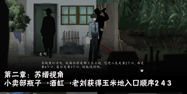 2、苏缙视角小卖部瓶子→酒缸→老刘获得玉米地入口顺序243