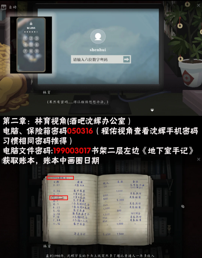 6、电脑、保险箱密码050316(程佑视角查看沈辉手机密码习惯相同密码推得)