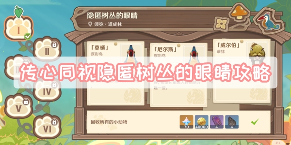以上就是这篇文章有关传心同视隐匿树丛的眼睛攻略的所有内容了,希望能够帮助到各位旅行者。更多游戏相关资讯内容,敬请关注手游网。
