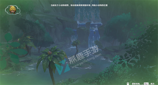 4、小动物视野:看向瀑布。