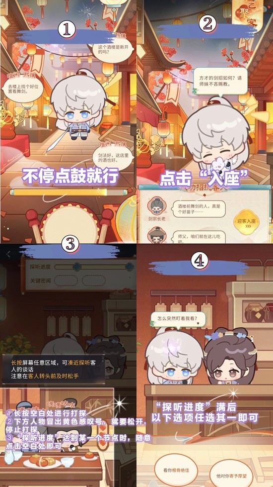 ②邀约花笺解锁完,才能解锁最后一个活动剧情,所以务必要做“探听”,探听才能解锁花笺