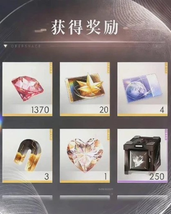 DEEPSPACE2 :钻石x200、体力x200、金币x20000