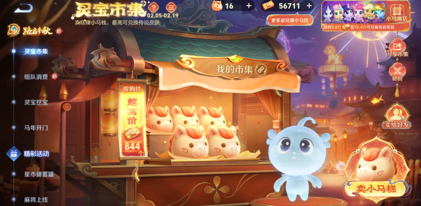 2026王者灵宝市集2月13日火热进行中!每日登录、分享市集码即可赚取小马糕,高价出售换小马钱。市集与挖宝双线并行,互逛互卖收益更高。今日999块顶级口令已出,以下为按价格排序的高价码合集,速来扫货卖高价!
