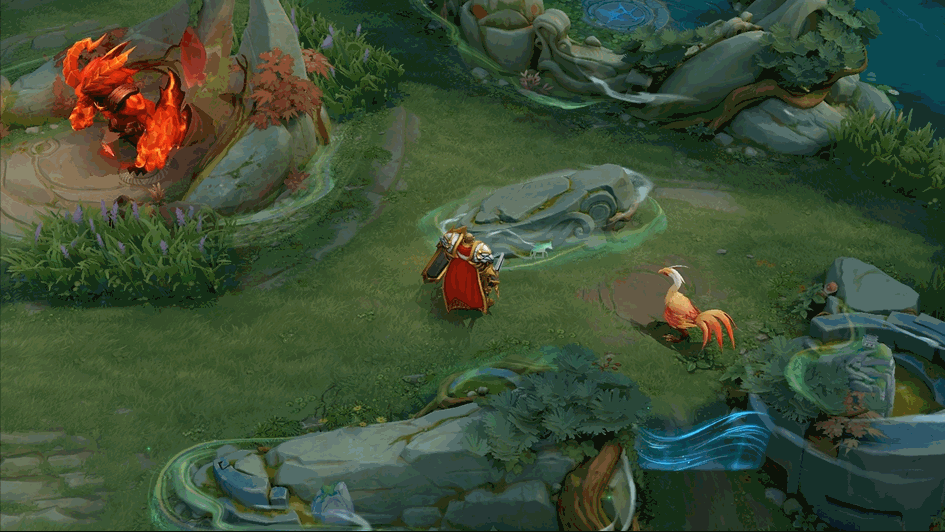 丝绸之路·拨云的出场动画是绿色特效,野区野区会进行小幅地形变化,受到英雄攻击时会获得额外护盾庇护。如下图展示,三处地形都有所变化。