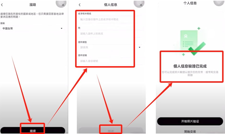 按照指引填写个人资料并提交验证,即可完成KYC1级认证。